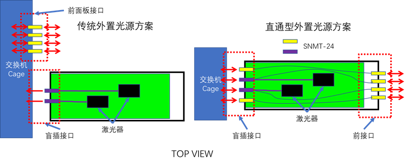 直通型外置光源和傳統(tǒng)外置光源方案對比