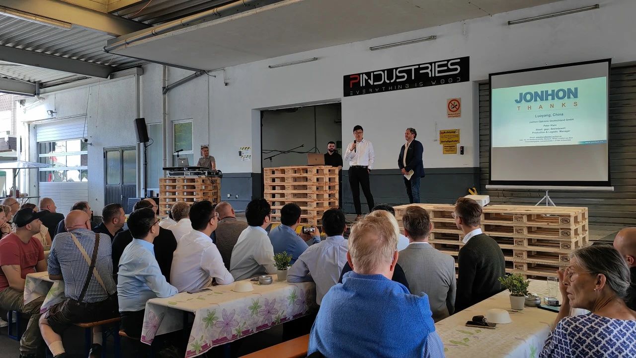 周濤和德國公司本地員工Peter共同進行了公司背景和主要業(yè)務(wù)的介紹。周濤提到,中航光電德國公司生產(chǎn)基地聚焦為歐洲區(qū)域客戶提供高端連接器的自動化生產(chǎn)交付,一期工程的順利達(dá)產(chǎn)將推動光電企業(yè)集團高端制造國際化布局再上新臺階,為“全球一流互連方案提供商”啟動新引擎。他同時也對當(dāng)?shù)卣?、園區(qū)及本地合作伙伴對項目的大力支持表示感謝,表示德國公司將拉滿風(fēng)帆,開足馬力,持續(xù)為歐洲本地客戶提供優(yōu)質(zhì)的服務(wù),為地區(qū)經(jīng)濟發(fā)展做出貢獻。