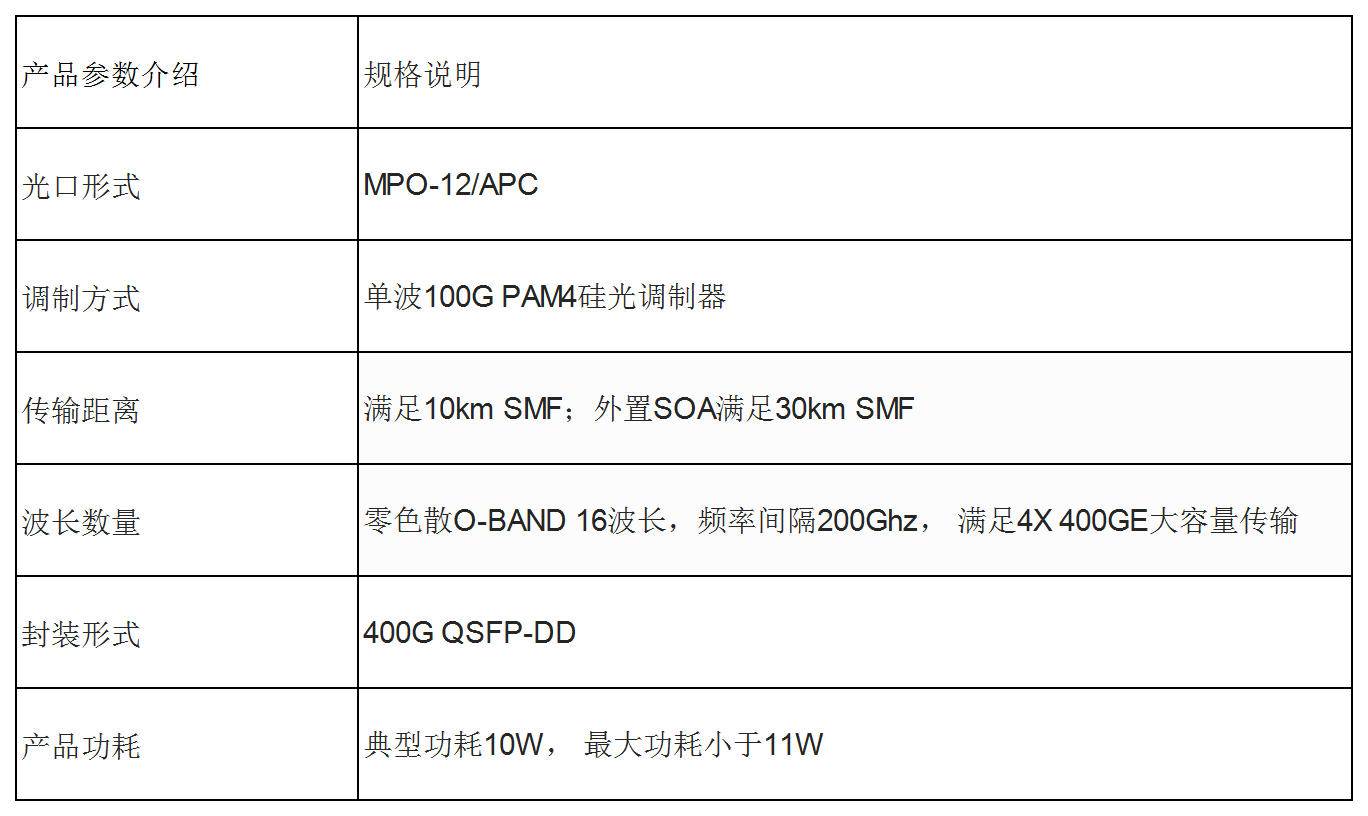 該產(chǎn)品基于4X100G PAM4硅光調(diào)制技術(shù),涵蓋16個波段,頻率間隔200Ghz O-band(1310nm窗口)DWDM技術(shù),利用其天然的零色散特性,重新定義了400GE的經(jīng)濟DCI互連標(biāo)準(zhǔn)。
