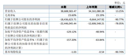 ICC訊 億芯源近日發(fā)布2019年年度報告,2019年公司營業(yè)收入38,688,583.47元,同比增長13.25%,實現歸屬于上市公司股東的凈利潤-18,436,623.71元,同比減少90.77%;實現基本每股收益-1.03元,上年同期為-0.54元。