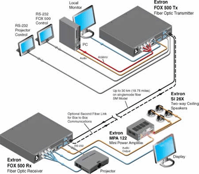 Extron FOX 500 Tx/Rx光纖延長器包括發(fā)送器和接收器,用來通過單條光纜進行遠距離傳輸高分辨率RGB信號、音頻和RS232控制信號。它特別針對可靠性和優(yōu)異的高分辨率圖像質量而設計,采用Extron獨特的全數(shù)字零壓縮技術,實現(xiàn)了完美的逐一像素的計算機視頻傳輸,最高分辨率可達UXGA(1600X1200)。特別針對視音頻系統(tǒng)而設計的FOX 500還包括了許多面向集成商的友好特性,例如圖像調整和校準,接收器的雙路RGB和音頻輸出,多位置RS-232控制、機架安裝能力以及實時系統(tǒng)監(jiān)控等。