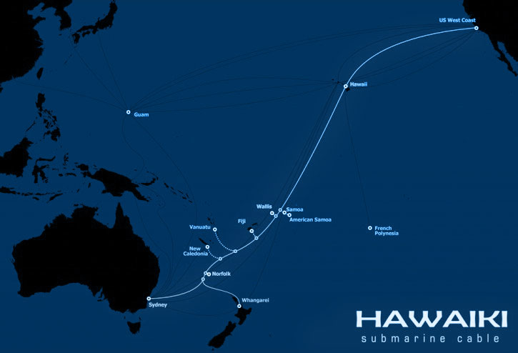 據(jù)介紹,Hawaiki海底光纜系統(tǒng)是目前連接美國(guó)和大洋洲的最高容量海纜系統(tǒng)。除此之外,它還可以通過(guò)增設(shè)延長(zhǎng)線連接南太平洋其他島嶼。