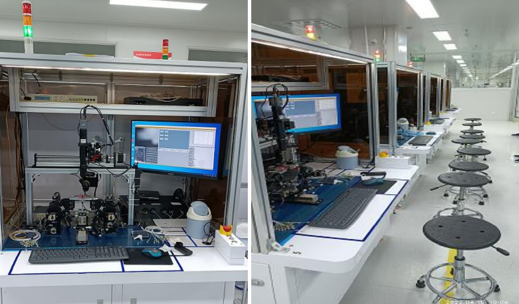 ICC訊 生產(chǎn)制造設(shè)備是光通信產(chǎn)業(yè)鏈上極其重要的一個(gè)節(jié)點(diǎn)領(lǐng)域,生產(chǎn)制造設(shè)備的優(yōu)劣,直接關(guān)系到最終產(chǎn)品的穩(wěn)定性、一致性、產(chǎn)品良率和生產(chǎn)效率。近日,訊石走訪了光通信材料領(lǐng)先企業(yè)奇芯光電。從交流中了解到,為了解決行業(yè)企業(yè)生產(chǎn)過程中遇到的一些普遍問題,及提高光通信器件企業(yè)的生產(chǎn)效率和良率。奇芯光電組建了專門的“設(shè)備與智能制造”研發(fā)團(tuán)隊(duì)。該研發(fā)團(tuán)隊(duì)主要由四大部分組成——軟件及系統(tǒng)團(tuán)隊(duì)、硬件團(tuán)隊(duì)、結(jié)構(gòu)設(shè)計(jì)團(tuán)隊(duì)、光器件工藝團(tuán)隊(duì)。開發(fā)出了高速功率計(jì)模塊,采樣率達(dá)到了100KHz,在業(yè)內(nèi)具有領(lǐng)先水平;為了實(shí)現(xiàn)自動(dòng)微距檢測(cè),開發(fā)出了電渦流傳感器用于檢測(cè)兩個(gè)部件的接近距離,實(shí)現(xiàn)了具有0.3um檢測(cè)分辨率。同時(shí)已申請(qǐng)第一發(fā)明人的發(fā)明專利5項(xiàng),已擁有實(shí)用新型專利9項(xiàng),并獲得軟件著作權(quán)5項(xiàng)等,在知識(shí)產(chǎn)權(quán)方面積累了豐碩成果。
