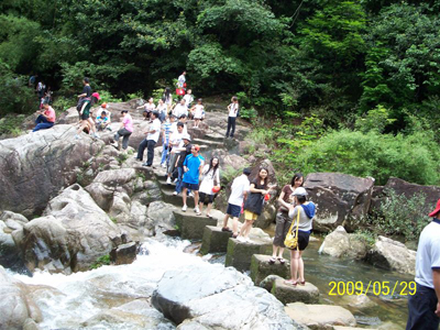 旅游的第一天,公司特意安排競技性強(qiáng)的爬山運(yùn)動,我們面對的是主峰天堂頂9999個超想像力臺階的白水寨。白水寨圍繞白水仙瀑及奇峰秀色,總長6.6公里,19000多步,橫跨三座高山,連接二大天池,號稱“天南第一梯”。登山過程中,盡情享受身邊的風(fēng)景。安靜平和,山、石、水、樹,結(jié)合在一起,滿目青山,悠悠綠水,清新的氣息,風(fēng)光旖旎,令人感動!
