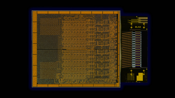 英特爾公司集成光子學(xué)解決方案(IPS)組展示了業(yè)界首個與英特爾CPU共封裝并運行實時數(shù)據(jù)的全集成光計算互連(OCI)芯片。可在新興的AI基礎(chǔ)設(shè)施中為數(shù)據(jù)中心和高性能計算應(yīng)用提供共封裝光輸入/輸出。(資料來源:英特爾公司)