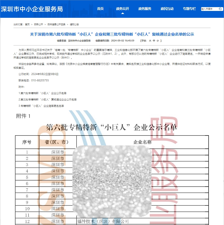 近日,深圳市中小企業(yè)服務(wù)局公示了第六批專精特新“小巨人”企業(yè)名單。