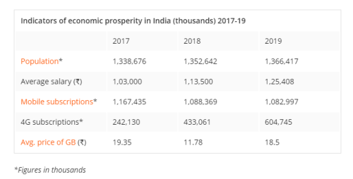 多年來(lái),其他人一直在談?wù)撚《鹊臐摿?,但現(xiàn)在它準(zhǔn)備好了嗎?下圖展示了近年來(lái)印度的人均薪資、4G用戶(hù)等數(shù)據(jù),一定程度上可以反映出該國(guó)的發(fā)展前景。