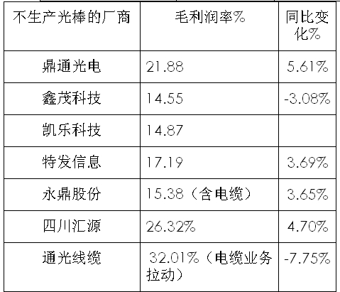 圖表272013上半年主要光纖光纜廠商毛利率對比