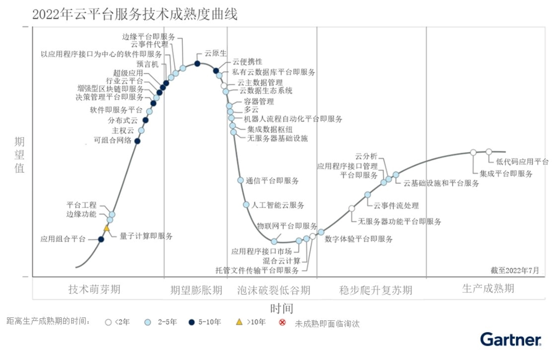 圖一、2022年云平臺(tái)服務(wù)技術(shù)成熟度曲線