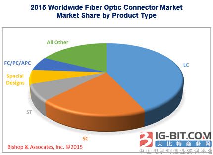 Bishop&Associates把光纖連接器分解成11個不同的市場領域。全球市場情況大體如下: