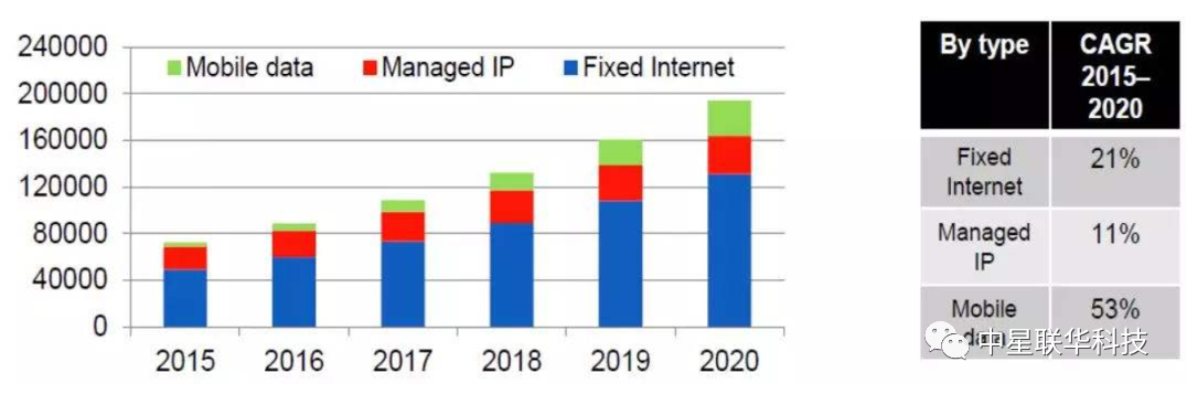 通信數(shù)據(jù)量增長(zhǎng)趨勢(shì)圖