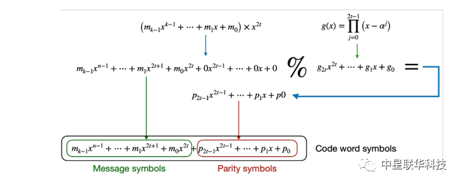 IEEE 802.3中定義了編碼的算法,編碼的數(shù)學(xué)過(guò)程并不復(fù)雜。將原始64B/66B的codeword編碼的數(shù)據(jù)后面補(bǔ)30個(gè)0,除以生成多項(xiàng)式 g(x)取余下的多項(xiàng)式為校驗(yàn)多項(xiàng)式p(x),將校驗(yàn)多項(xiàng)式加到剛才補(bǔ)過(guò)0的編碼數(shù)據(jù)多項(xiàng)式中,就是最終生成的編碼。