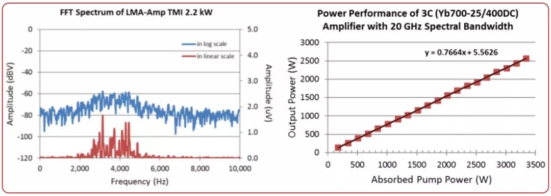 (右圖)Yb21.9/400 3C光纖放大在2.6kW輸出且未出現(xiàn)TMI