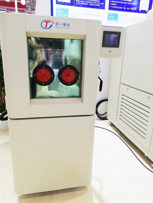 在現(xiàn)場,天一瑞合展出了TYCT-300芯片老化試驗箱,該產(chǎn)品可以自動化進行溫控測試,快速升降溫控制,支持APP遠程控制測試和SATAI/II/III的測試。同時,產(chǎn)品箱內(nèi)風(fēng)速可以與溫度均衡,支持異常斷電測試和老化測試。