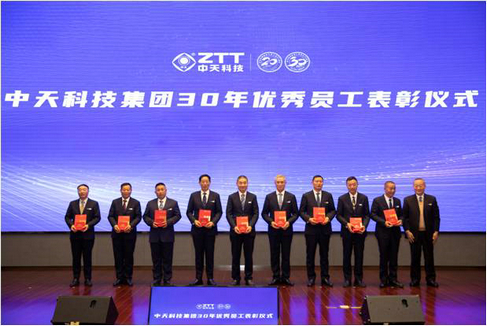 現(xiàn)場播放了國內(nèi)外嘉賓祝賀視頻,員工代表分享了與企業(yè)同奮斗共成長的真切感受。會議表彰了在中天奮斗30年的102名員工,并頒發(fā)履職30周年榮譽紀(jì)念章。