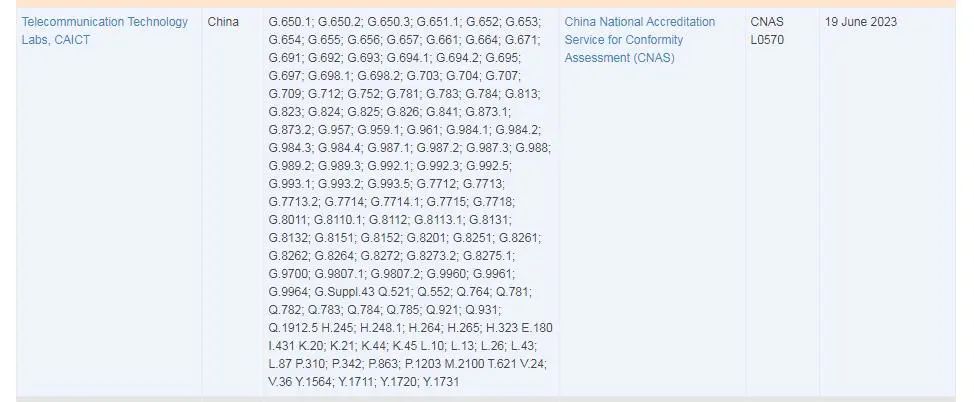 ICC訊 近日,中國(guó)信息通信研究院中國(guó)泰爾實(shí)驗(yàn)室經(jīng)評(píng)定獲得國(guó)際電聯(lián)(ITU)“一致性和互操作性(C&I)計(jì)劃”認(rèn)可,正式進(jìn)入ITU認(rèn)可的檢測(cè)實(shí)驗(yàn)室數(shù)據(jù)庫(kù),這標(biāo)志著中國(guó)泰爾實(shí)驗(yàn)室的ITU-T國(guó)際標(biāo)準(zhǔn)測(cè)試能力被國(guó)際權(quán)威標(biāo)準(zhǔn)化組織承認(rèn)及肯定。
