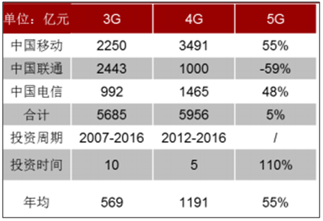 三大運營商 3G、4G 投資額