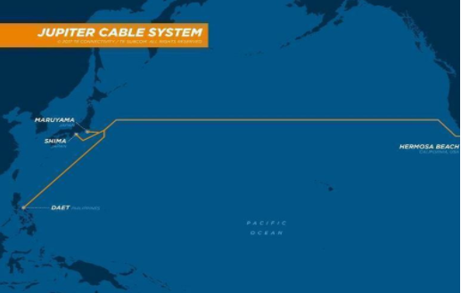 據(jù)介紹,Jupiter海底光纜系統(tǒng)將連接日本和美國,途徑多個(gè)亞洲國家和地區(qū),全長超過14000千米,初始設(shè)計(jì)容量達(dá)到60Tbps,擬于2020年投產(chǎn)。