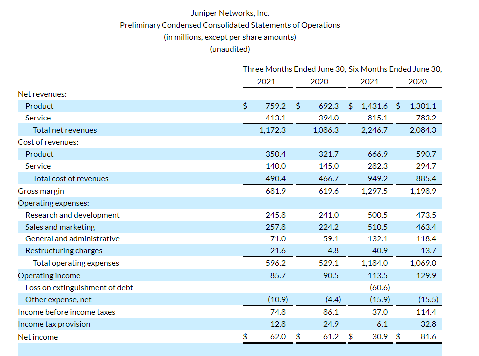 ICC訊(編譯:Vicki)安全,人工智能驅(qū)動(dòng)網(wǎng)絡(luò)的領(lǐng)導(dǎo)者Juniper網(wǎng)絡(luò)(NYSE:JNPR)報(bào)告了截至2021年6月30日的二季度的初步財(cái)務(wù)業(yè)績(jī),并提供了截至2021年9月30日三季度的預(yù)測(cè)。