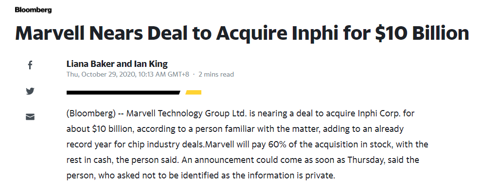 原文鏈接:https://finance.yahoo.com/news/marvell-nears-deal-acquire-inphi-021318457.html?from=timeline&isappinstalled=0&guccounter=1