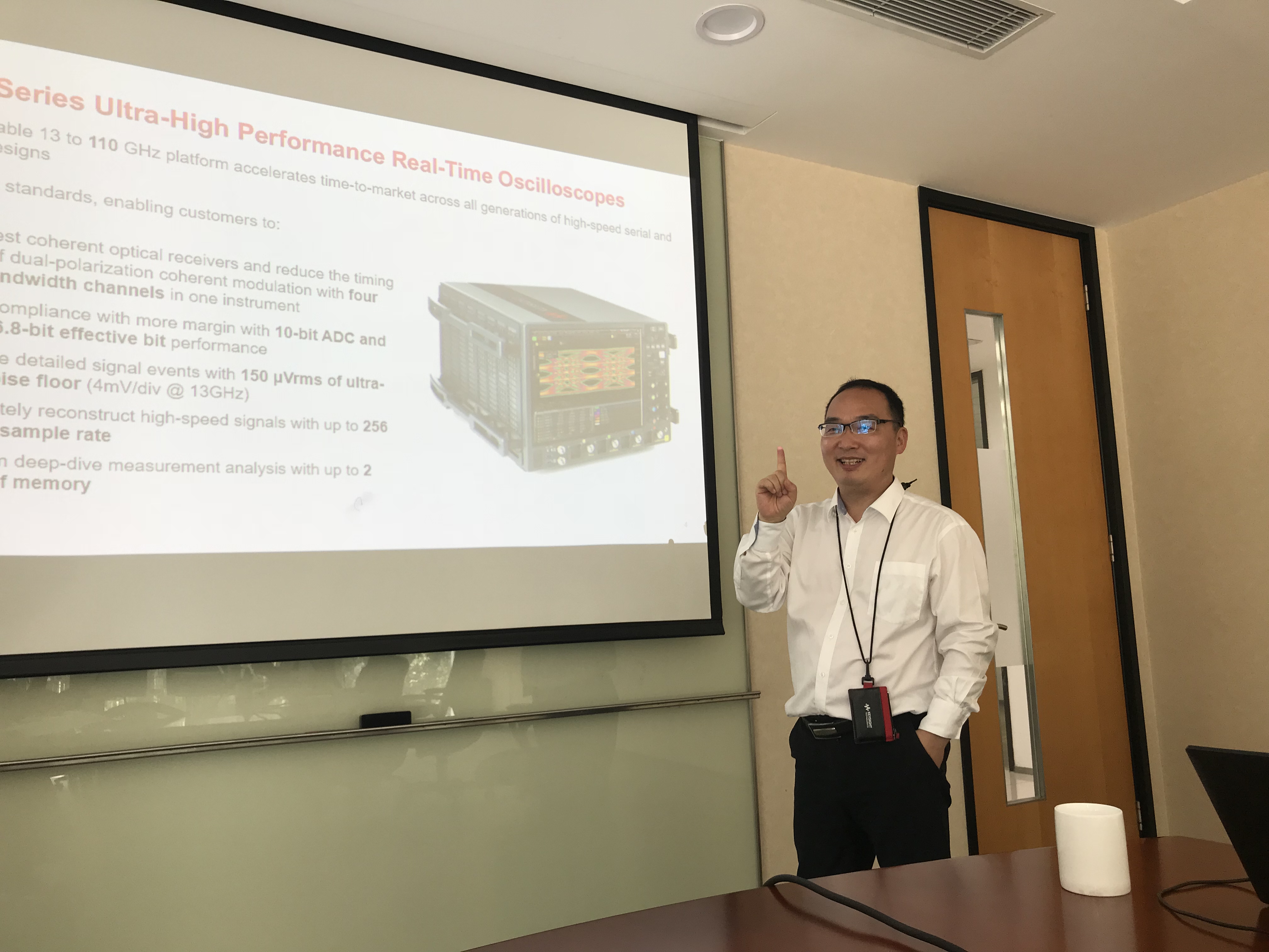 圖:杜吉偉先生向我們介紹是德科技最新產(chǎn)品