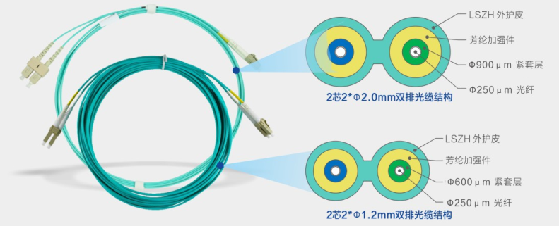 一、100G BASE-CWDM4和100G BASE-SWDM4采用雙工LC結(jié)構(gòu),常規(guī)的雙工LC光纜為2.0mm *2結(jié)構(gòu),現(xiàn)瘦身升級(jí)為1.2mm *2結(jié)構(gòu)。現(xiàn)有1.2mm *2的雙工LC光纖光纜與原有方案相比,光纜的體積減少40%,光纜的重量減少約30%,極大的降低了對(duì)光纜槽道的體積和強(qiáng)度的要求,同時(shí)降低工程人員施工難度。