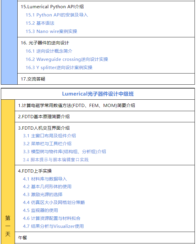 培訓班類型:Lumerical光子器件設計初階班 、Lumerical光子器件設計中級班