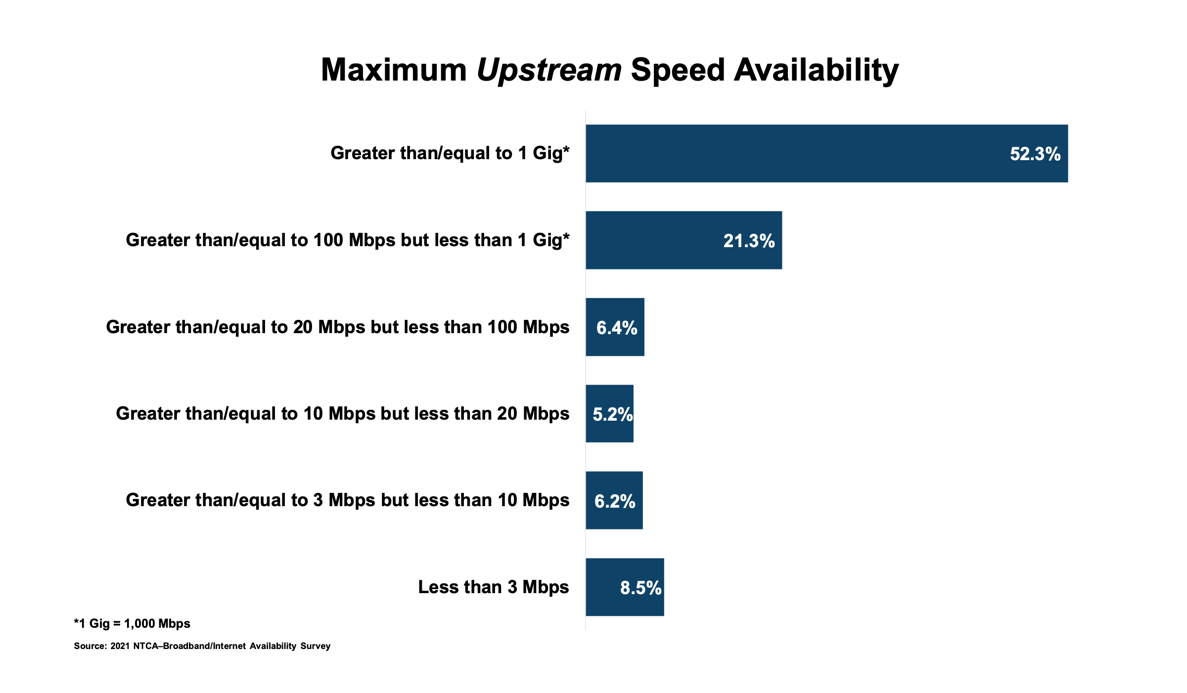 The NTCA said that, on average, more than half (52.3%) of its survey respondents' customers can receive a maximum upstream speed of greater than or equal to 1 Gbit/s. Here's a version of the graphic that humans can read.