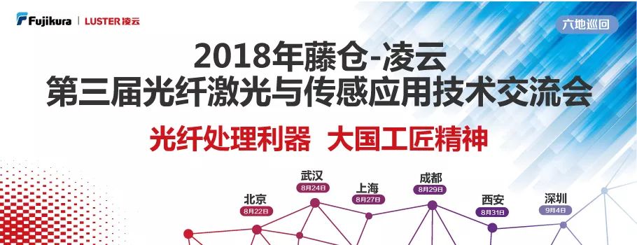 ICCSZ訊 相約2018,我們2017的共同約定,第三屆藤倉-凌云光纖激光與傳感應(yīng)用技術(shù)交流會,全國六地巡回8月火辣起航。凌云光技術(shù)集團(tuán)服務(wù)光纖激光與傳感、光纖通信行業(yè)22年,與全球領(lǐng)先的特種光纖熔接設(shè)備廠商藤倉公司(Fujikura)戰(zhàn)略合作13年,共同攜手深入研究特種光纖熔接技術(shù)及應(yīng)用,也見證了光纖技術(shù)行業(yè)的蓬勃發(fā)展,想用戶所想,急用戶所急,點(diǎn)滴努力推動光纖技術(shù)行業(yè)發(fā)展,積累了豐富的特種光纖熔接處理經(jīng)驗。