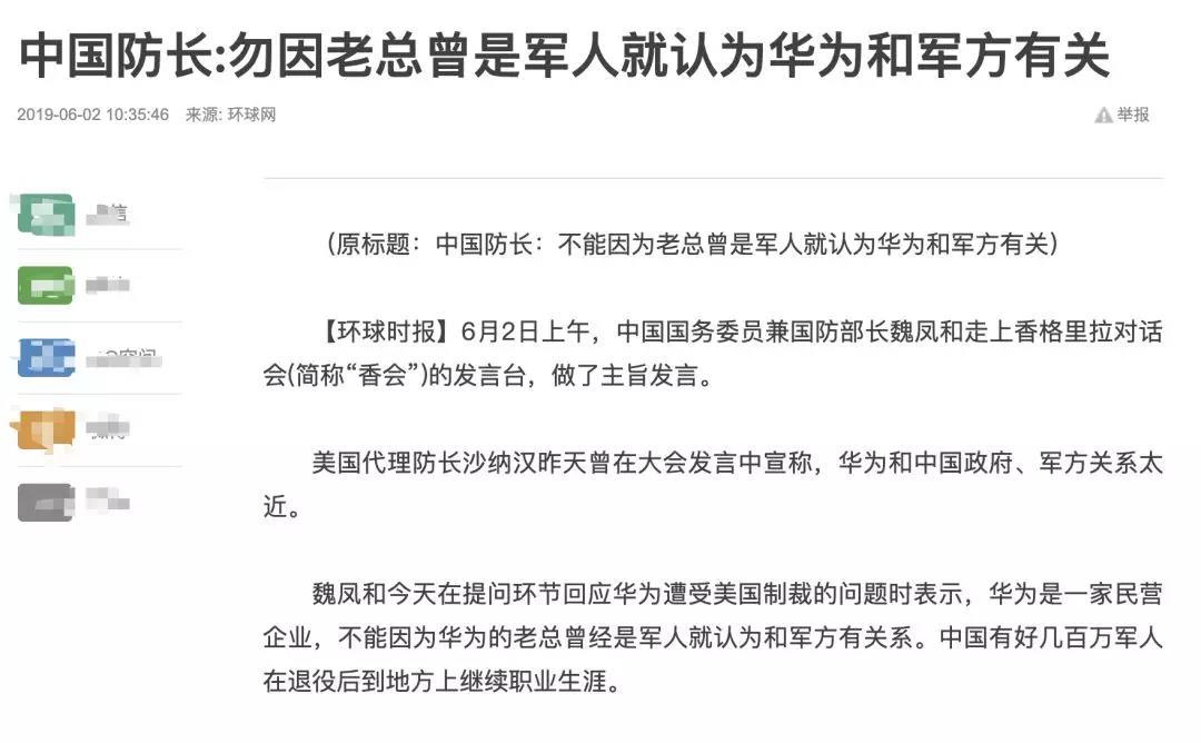 這已經(jīng)不是中方就此問題第一次回應(yīng)了。在今年5月底6月初新加坡舉行的香格里拉對話會上,中國國防部長魏鳳和表示,華為是一個民營企業(yè),不能因?yàn)?A href="http://m.partyval.com/site/CN/Search.aspx?page=1&keywords=%e5%8d%8e%e4%b8%ba&column_id=ALL&station=%E5%85%A8%E9%83%A8" target="_blank">華為的老總曾經(jīng)是軍人就認(rèn)為和軍方有關(guān)系。