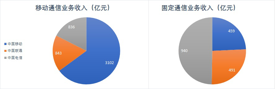 由于行業(yè)固定通信業(yè)務(wù)在電信業(yè)務(wù)整體收入中占比僅有29%,因此中國移動在占比七成的移動通信業(yè)務(wù)收入上同比下降,嚴(yán)重影響了電信業(yè)的整體收入增速,拖了行業(yè)的后腿。
