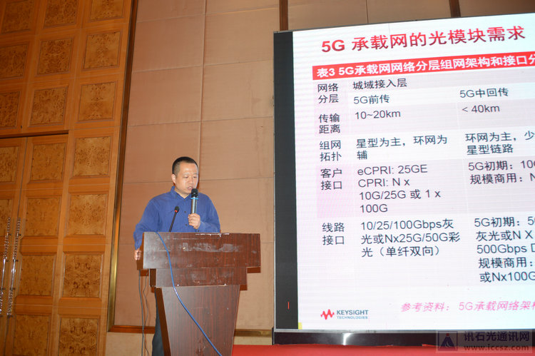 第二個(gè)主題演講是由是德科技高速測(cè)試技術(shù)專家李凱帶來的《5G 承載網(wǎng)光模塊標(biāo)準(zhǔn)及測(cè)試挑戰(zhàn)》的主題演講,其在演講中談到:隨著5G商用化的臨近,“5G商用,承載先行“,承載網(wǎng)的擴(kuò)張建設(shè)必然會(huì)給2019年的光模塊市場(chǎng)帶來新的增長點(diǎn)。尤其是信通院在今年1月正式發(fā)布了5G承載光模塊白皮書,進(jìn)一步促進(jìn)了行業(yè)的迅速發(fā)展。是德科技作為5G承載網(wǎng)工作組儀表廠商代表,參與了5G承載網(wǎng)光模塊標(biāo)準(zhǔn)和測(cè)試標(biāo)準(zhǔn)的制定并支持了2018年12月首次多廠商送樣的5G承載光模塊測(cè)試workshop,5G OTN知識(shí)普及和5G OTN白皮書簡介勢(shì)在必行,在此專題可全面了解5G承載網(wǎng)光模塊相關(guān)標(biāo)準(zhǔn)和測(cè)試方案。
