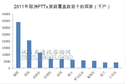 2011年底,歐洲FTTH/B家庭覆蓋數(shù)達(dá)到2900萬(FTTx家庭覆蓋數(shù)達(dá)到1.33億,包括VDSL,F(xiàn)TTLA),用戶520萬(1440萬FTTx用戶)。老牌運(yùn)營(yíng)商僅占到那些部署的部分(歐洲家庭光纖覆蓋剛剛超過30%),但是他們?nèi)匀皇悄切┰鲩L(zhǎng)潛力最大的。事實(shí)上,所有的歐洲老牌運(yùn)營(yíng)商要么已經(jīng)推出了FTTH/B,要么正在整裝待發(fā),要么正處于計(jì)劃階段,并宣布將投資數(shù)十億歐元。進(jìn)一步來說,他們之中的有一些在國內(nèi)市場(chǎng)已經(jīng)大力地卷入VDSL項(xiàng)目(2011年底,德國電信家庭覆蓋數(shù)超過1200萬,比利時(shí)電信380萬,瑞士電信350萬,土耳其電信300萬),在覆蓋地區(qū)的滲透率不同國家也不同,從德國的大概6%到瑞士的50%。