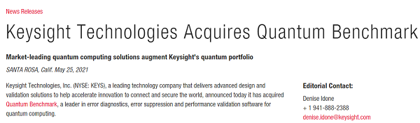 ICC訊(編譯:Nina)上周二(2021年5月25日),是德科技(Keysight Technologies, Inc.)(紐交所:KEYS)宣布已收購Quantum Benchmark,后者是用于量子計(jì)算的錯(cuò)誤診斷、錯(cuò)誤抑制和性能驗(yàn)證軟件的領(lǐng)導(dǎo)者。