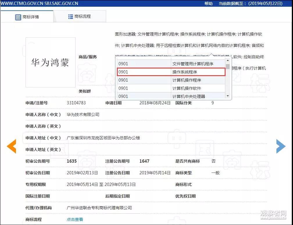 華為在中國注冊的商標(biāo) 圖自國家知識產(chǎn)權(quán)局商標(biāo)局網(wǎng)站