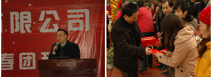 飛陽科技2011年迎新年會”正隆重舉行。公司總裁李朝陽博士、常務副總裁丁新松、監(jiān)察員王斌、生產(chǎn)運營總監(jiān)劉永廣、上市辦主任鄒斌蒞臨年會,與公司所有員工歡聚一堂,共同舉杯,喜迎新春!