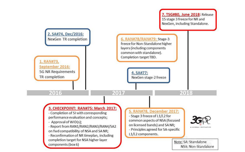 與之前確定的時(shí)間計(jì)劃相比,唯一不同的就是增加了一個(gè)NSA標(biāo)準(zhǔn)完成時(shí)間點(diǎn)(17年12月),而SA的完成時(shí)間不變,仍然是18年6月。