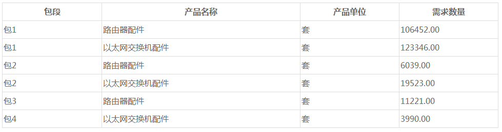 據(jù)悉,本次中國(guó)移動(dòng)“2018年至2019年高端路由器和高端交換器集中采購(gòu)(擴(kuò)容部分)”采購(gòu)內(nèi)容為高端路由器和高端三層交換機(jī)擴(kuò)容配件,預(yù)估采購(gòu)總數(shù)量為269323個(gè)。根據(jù)公布信息顯示,其中包1為華為技術(shù)有限公司,包2為新華三技術(shù)有限公司,包3為上海諾基亞貝爾股份有限公司,包4為中興通訊股份有限公司。