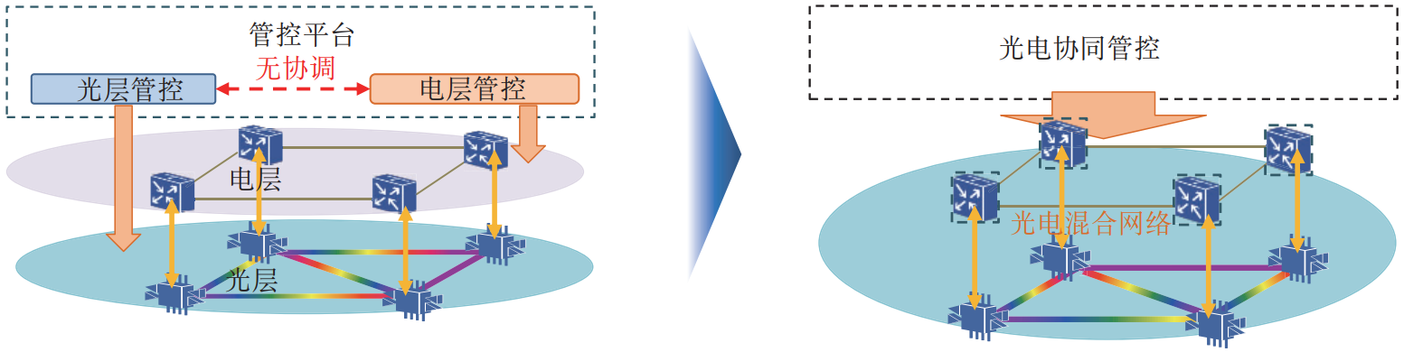 圖2 光電協(xié)同管控促進(jìn)網(wǎng)絡(luò)向光電聯(lián)動一張網(wǎng)演進(jìn)