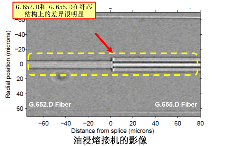 任何在兩種光纖的折射率分布上存在的巨大的不同或者差異,在被熔接一起之后都有可能在熔接點上面產(chǎn)生豎直的線條或者陰影,并且可以在光纖熔接機顯示器上的光纖影像上面表示出來。