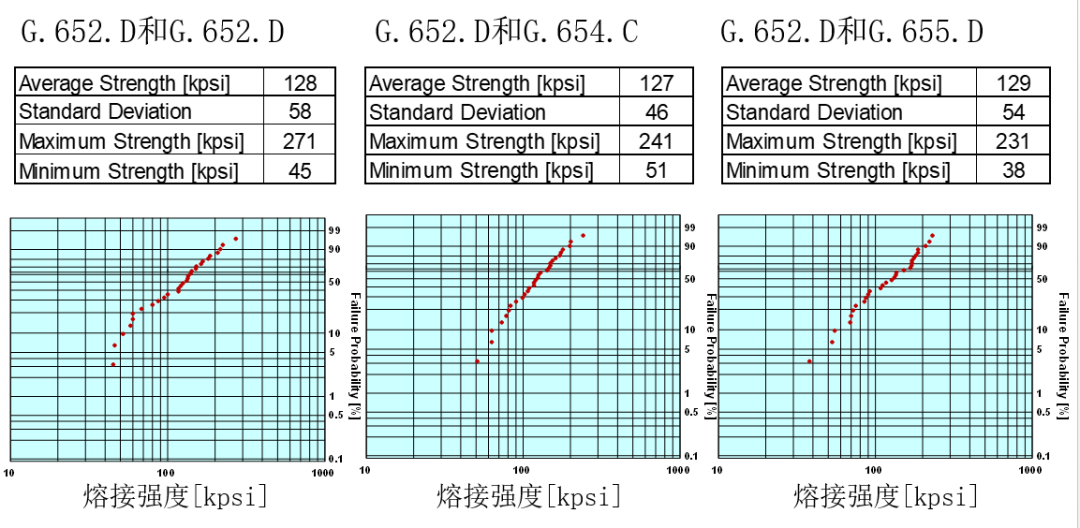 可以看到即使三種光纖在玻璃的結構上存在很大的差異,但是熔接后的強度并沒有明顯的區(qū)別。