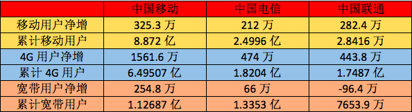 總的來說,中國移動(dòng)還是一枝獨(dú)秀,無論是在4G業(yè)務(wù)上還是寬帶業(yè)務(wù)上,增量都是最多的,尤其是4G用戶,12月凈增1561.6萬戶,是電信和聯(lián)通的三倍多。