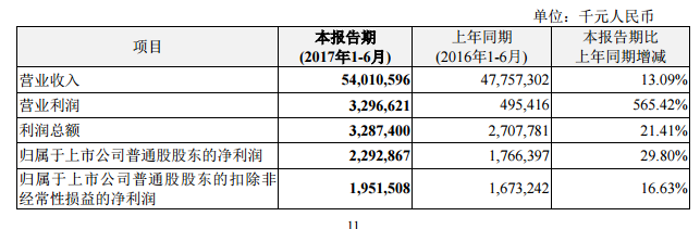 2017年上半年?duì)I業(yè)收入變動(dòng)分析