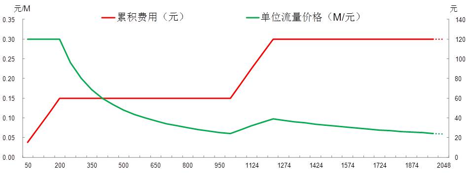 從圖四,可以看出在一定流量區(qū)域內(nèi),流量與費(fèi)用是成正比例關(guān)系,然而,超過(guò)一定范圍內(nèi)費(fèi)用遇到封頂價(jià),單位流量費(fèi)用極速下降。流量業(yè)務(wù)收入受到制約。中國(guó)電信科技委主任韋樂(lè)平曾在2013年訊石9月研討會(huì)上稱:靠流量增加收入不是長(zhǎng)遠(yuǎn)之計(jì)——流量固然帶來(lái)收入增長(zhǎng),但是流量?jī)r(jià)值差異極大,不是越大越好,增速最高的大流量業(yè)務(wù)的前幾名均是視頻業(yè)務(wù),而在我國(guó),這類視頻業(yè)務(wù)的比特價(jià)值僅僅是話音、短信、彩鈴的萬(wàn)分之一量級(jí),試圖靠這樣的低價(jià)值高流量來(lái)增加ARPU收入是不現(xiàn)實(shí)的,一旦用戶增長(zhǎng)空間消失,將無(wú)路可走,若考慮投入產(chǎn)出,也不能長(zhǎng)久持續(xù)。