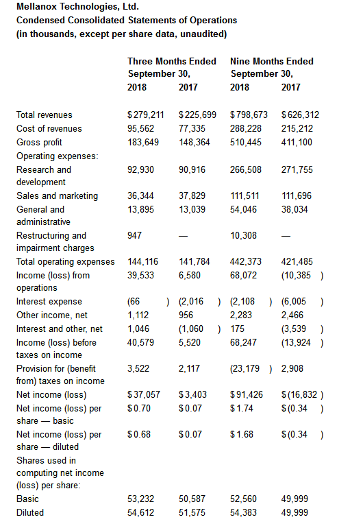 ICCSZ訊(編譯:Vicki)數(shù)據(jù)中心服務(wù)器和存儲(chǔ)系統(tǒng)高性能端到端互連解決方案的領(lǐng)先供應(yīng)商Mellanox(NASDAQ:MLNX)公布了截止到2018年9月30日的2018年第三季度的財(cái)務(wù)業(yè)績(jī)。