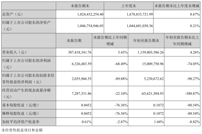 ICCSZ訊(編輯:Debi)10月23日晚間,東莞銘普光磁股份有限公司(銘普光磁,002902)發(fā)布2018年第三季度報告。2018年第三季度,銘普光磁實現(xiàn)營業(yè)收入3.87億元,同比增長3.43%;歸屬于上市公司股東的凈利潤632.64萬元,同比下降68.49%。而2018年前三季實現(xiàn)營業(yè)收入11.59億元,同比增長4.26%;歸屬于上市公司股東的凈利潤1500萬元,同比下降74.05%。