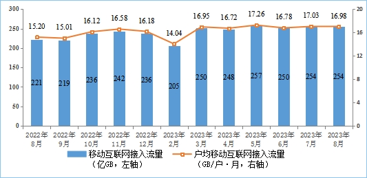 移動互聯(lián)網(wǎng)流量較快增長,8月DOU值維持高位。1-8月份,移動互聯(lián)網(wǎng)累計(jì)流量達(dá)1932億GB,同比增長14.7%,增速與1-7月份持平。截至8月末,移動互聯(lián)網(wǎng)用戶數(shù)達(dá)15.01億戶,比上年末凈增4710萬戶。8月當(dāng)月戶均移動互聯(lián)網(wǎng)接入流量(DOU)達(dá)到16.98GB/戶·月,同比增長11.7%,比上年底高0.8GB/戶·月。
