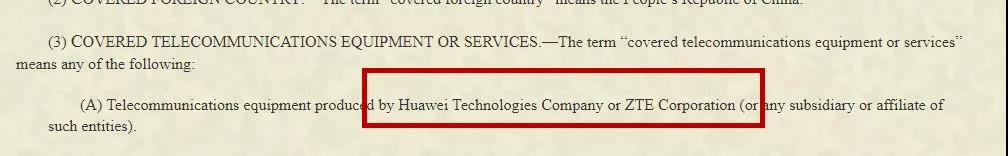 沃特想要推遲實施的是特朗普去年8月13日簽署的總額達7160億美元的2019年度國防授權(quán)法案(NDAA),該法案號稱美國近幾年對外“最激進”新法案,其中就包括一條:禁止政府機關(guān)及其承包商向中興、華為以及一批其他中國公司購買設(shè)備。