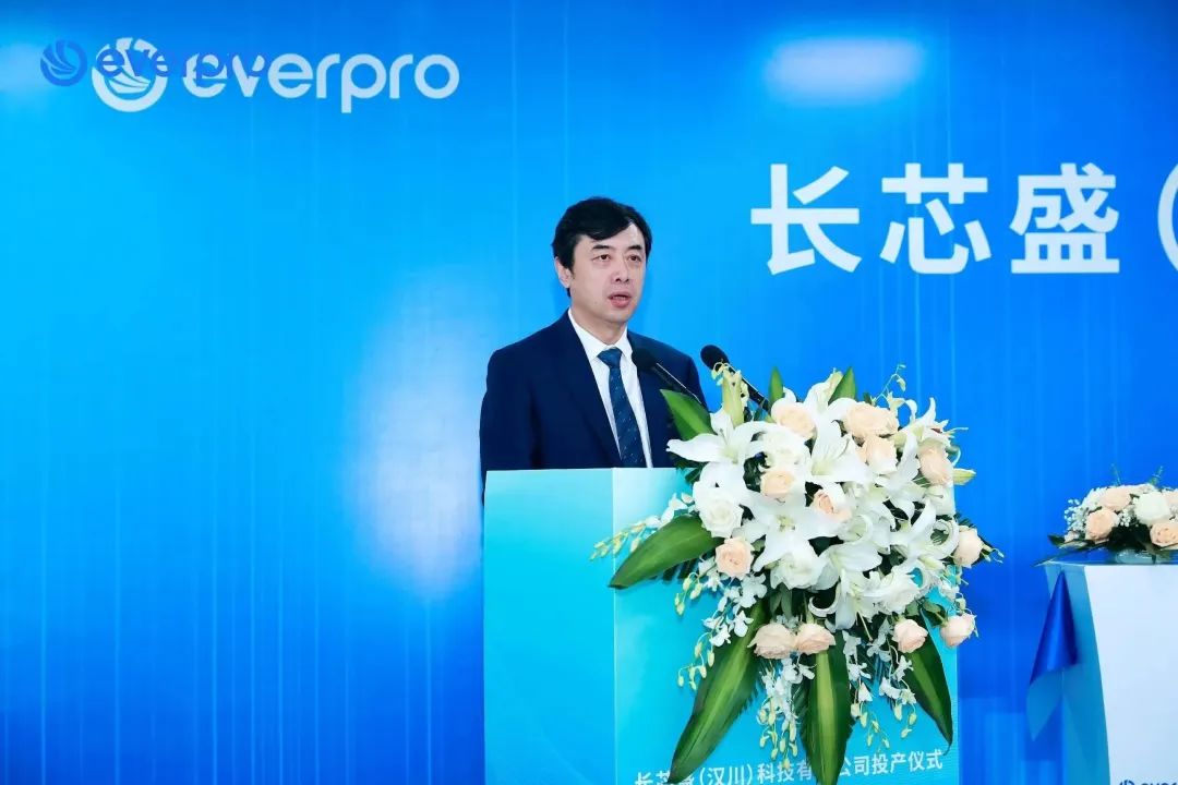 投產(chǎn)儀式現(xiàn)場(chǎng),孝感市政府副市長(zhǎng)、漢川市委書(shū)記黃建軍,長(zhǎng)飛公司執(zhí)行董事兼總裁莊丹,長(zhǎng)芯盛(武漢)科技有限公司總經(jīng)理湯金寬分別致辭,儀式由長(zhǎng)飛公司副總裁鄭昕主持。