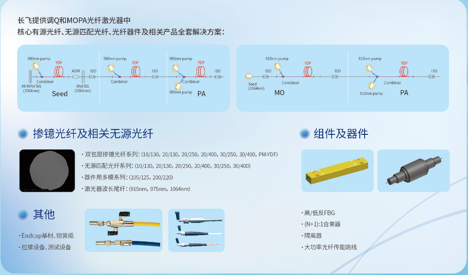 1.光纖激光器核心摻鐿光纖、無源光纖綜合解決方案